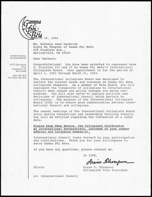 Tau Delta Theta was the first local sorority founded in 1902. They became the second Gamma Phi Beta chapter in Ohio when 25 undergraduates and 13 alumnae were initiated by Alice Dibble Ramsey (Northwestern, 1924) and Bertha Schneider (Illinois at Urbana-Champaign, 1913) and the collegiate members of Alpha Eta (Ohio Wesleyan). The charter was presented by Grand President* Elizabeth Davidson Barbour (Northwestern, 1909).