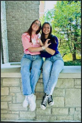 Two Unidentified Eta Zeta Chapter Members on Stone Wall Photograph 1, c. 2024