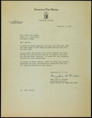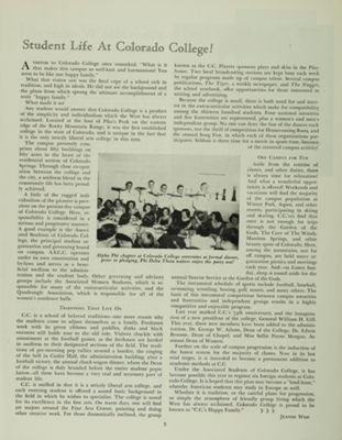 Before becoming a chapter of Gamma Phi Beta, Alpha Phi Chapter (Colorado College) was a six-year-old club known as Zetalethian. In 1932, the college administration gave permission for national sororities to enter the campus and Zetalethian was sponsored by a distinguished group of Colorado alumnae, including Lindsey Barbee (Denver, 1897), Lucy Moore Lennox (Denver, 1905) and Louise Robinson Wyatt (Denver, 1916), as well as Flora Dudd Microw (Syracuse). The group was initiated in the Pilgrim Room of Shove Chapel, a gift to the college by the brother of Blanche Shove Palmer (Syracuse, 1878), founder of Gamma Phi Beta endowment fund. Grand President* Millicent Lees Hoffman (Minnesota-Twin Cities, 1906) installed the chapter, assisted by Elizabeth Ann Bosworth and members of Theta Chapter (Denver) and Tau Chapter (Colorado State). The chapter had 24 charter members.
