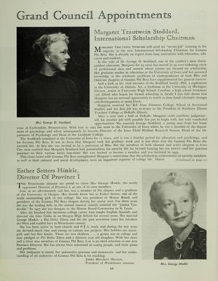 Beta Epsilon Chapter (Miami-Ohio) was colonized in 1946 through the efforts of Province* Director Martha Vinson Bernhard (Arizona, 1924) and a group of devoted Oxford alumnae directed by Mary Werts Beam (Illinois at Urbana-Champaign, 1922). Paul Beam, executive secretary of Phi Delta Theta Fraternity, secured the use of a room in the new Phi Delta Theta national headquarters building for a temporary meeting place for the new chapter. Installation ceremonies were held in the Memorial Presbyterian Church and the charter presented by Grand President** Penelope Murdoch Simonson (California-Berkeley, 1909). Twenty-two charter members and the wife of the president of the University were initiated by members of Alpha Eta Chapter (Ohio Wesleyan).