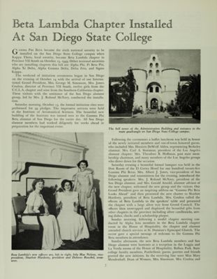 Beta Lambda Chapter was installed at San Diego State University in San Diego, California, on October 15, 1949.