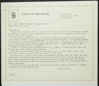 Fran Green to Sally Lewis Memo, May 25, 1978