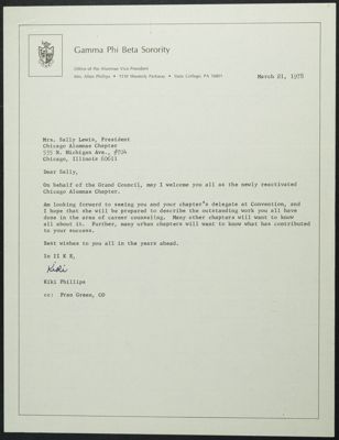 Fran Green to Sally Lewis Letter, March 21, 1978
