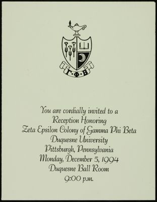 Zeta Epsilon Colony Reception Invitation, December 5, 1994