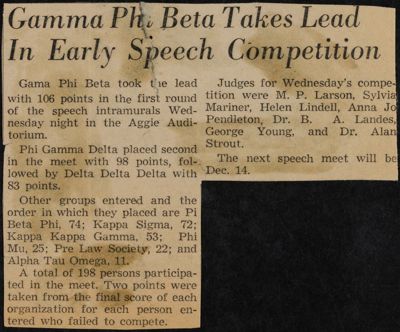 Gamma Phi Beta Takes Lead in Early Speech Competition Newspaper Clipping