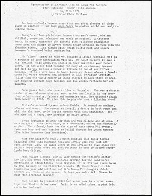 Presentation of Keepsake Gift to Gamma Psi Seniors From Waterloo, May 11, 1972