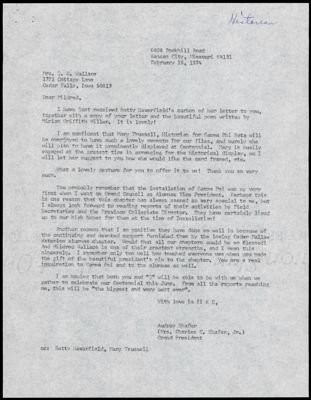 Audrey Shafer to Mildred Wallace Letter, February 19, 1974