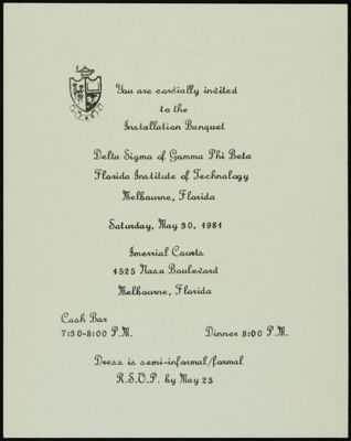 Delta Sigma Chapter Installation Banquet Invitation, May 30, 1981